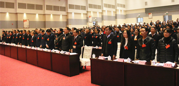 州委常委、市委书记庞俊代表中国共产党蒙自市第三届委员会向大会作题为《不忘初心、牢记使命,决战决胜全面建成小康社会》的工作报告。