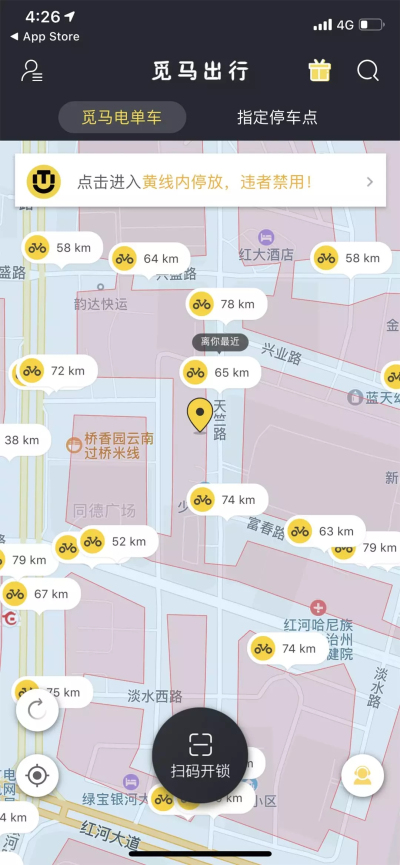 也就是说,现在觅马出行的共享电动单车不像共享自行车,借车还车都必须到指定的地方,只要将车辆停到路边划设的非机动车停车位内就能够成功的还车。