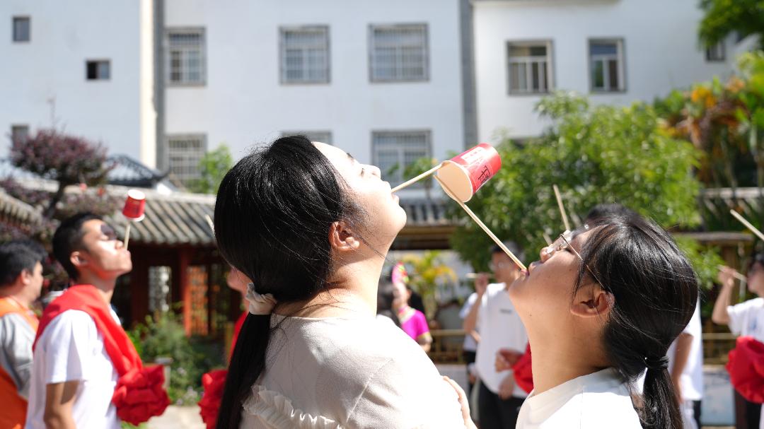 在集体游戏环节中,夺魁宝瓶、一举夺魁挑金梁、魁星挑玉蔬等充满美好寓意的游戏项目让现场气氛持续升温。学子们组队协作,在欢声笑语中释放着青春活力。