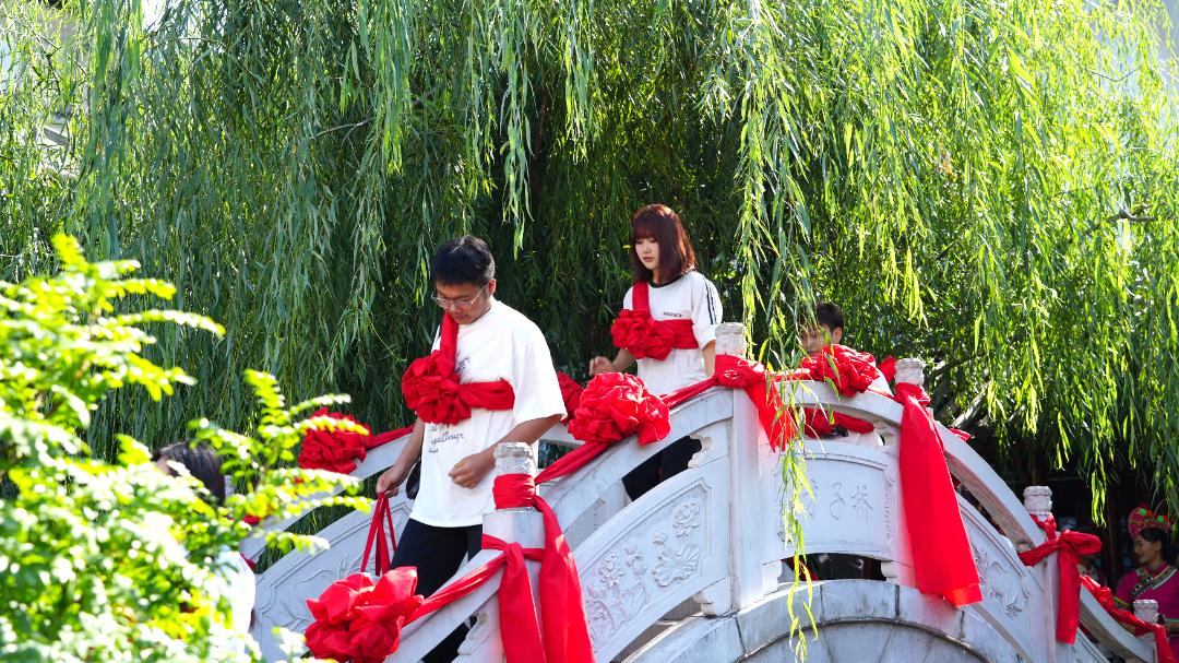 过桥米线盛宴后,随着一声锣响和一声声“才子过桥喽”,学子们依次走过才子桥,寓意他们成功上岸。