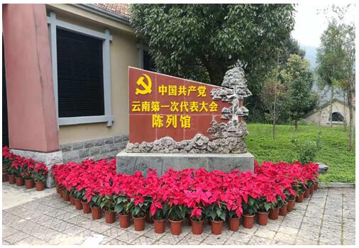对中共云南一大会址处采用摆设鲜花及室内花卉的形式进行景观美化,在浮雕墙、陈列馆等重要节点共摆设一品红3943盆,接待中心处摆放室内花卉非洲茉莉、龙血树、虎山榕、水培白掌共计31盆。(蒙自市住建局园林规划管理站)