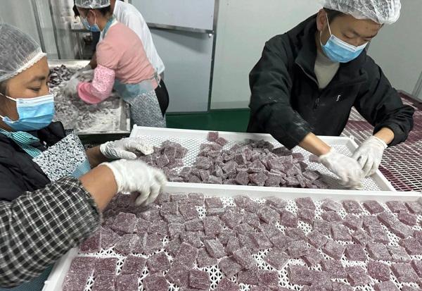 期路白苗族乡枇杷、蓝莓、玫瑰精深加工项目已全面开启试生产。生产车间内,机器轰鸣,工人们正忙着将新鲜的枇杷、蓝莓加工成美味可口的糖果,空气中弥漫着甜蜜的气息。