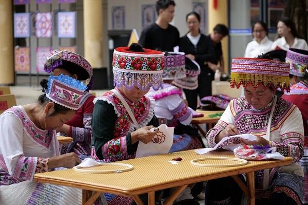 参赛选手杨琼英表示:“能在这么大的舞台上展示祖辈传下来的手艺,既紧张又自豪。现在党和政府这么重视非遗保护,我们更要用心把苗绣技艺传承好。”