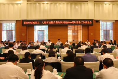 10月29日,我市召开创城固卫、人居环境提升暨红河州建州60周年筹备工作推进会,对相关工作进行安排和部署。州委常委、市委书记庞俊,市委副书记、市长姜伟在会上讲话。市委副书记赵雄主持会议,市人大常委会主任李旭东,市政协主席李堂兴参加会议。