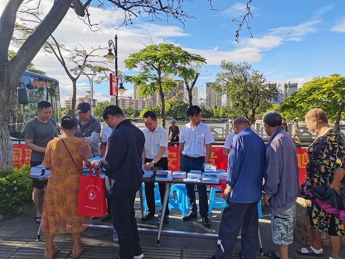 为保障城市建设和经济发展,增强人民群众居安思危、常备不懈的国防观念和防空应急准备意识,熟悉防空警报信号,红河州住房和城乡建设局和蒙自市住房和城乡建设局人防办工作人员在9月18日这个特殊的日子,来到南湖广场,联合开展人防知识宣传教育活动。州住房和城乡建设局党组成员、副局长、州人防办主任白玉文率州人防办业务综合科科长郑伟文,州人防办指挥科科长周天克,州人防办人防指挥信息保障中心负责人刘煜亲临现场,同蒙自市住房和城乡建设局人防办相关负责人向广大市民讲解人防知识并一同发放人民防空知识手册。