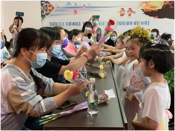 接着第二环节,可爱的孩子们又为各位“妈妈”送上一束盛开的康乃馨同时送上贴心祝福的话语,使妈妈们脸上浮现出幸福的笑容。