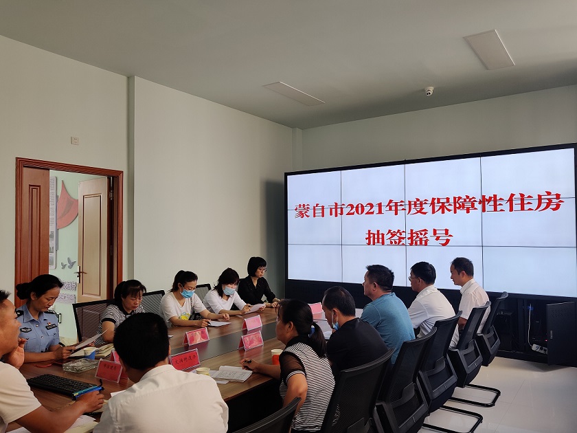 2021年6月1日上午9点,一场由住建局组织,市公证市公证处现场全过程公证,街道等多部门全程参与的特殊抽签摇号工作在蒙自市房地产管理处信息中心举行。通过“房管云”综合平台手机公众号抽签摇号的方式,开展公租房实物配租,为432户经审核符合公租房配租条件的申请家庭圆上“新房梦”“安居梦”。