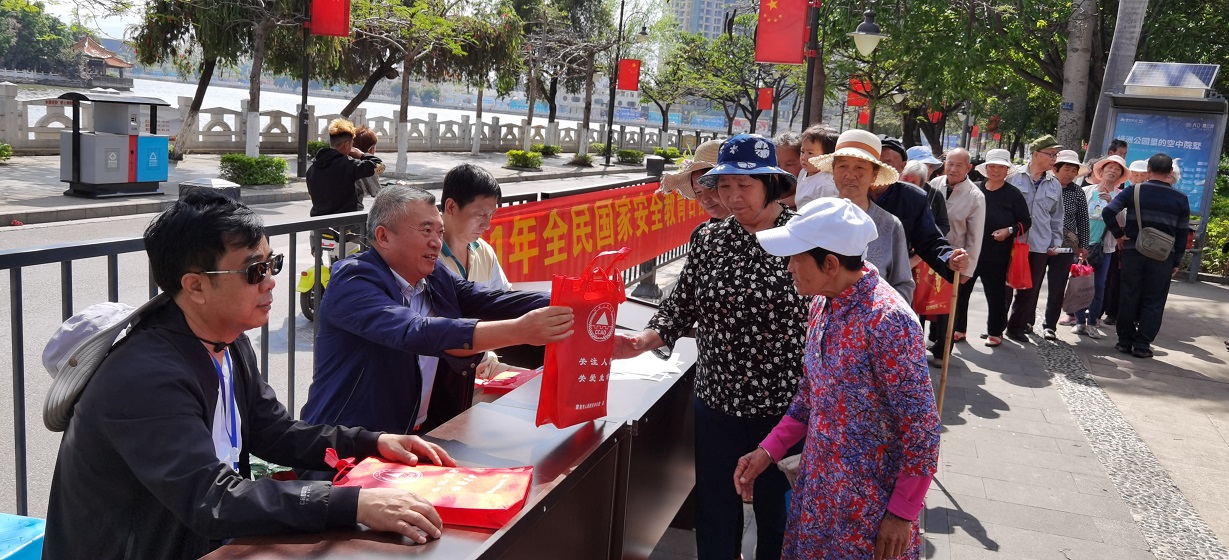 4月12日下午,蒙自市住建局人防办工作人员来到南湖广场,开展全民国家安全教育普法宣传暨2021年“4·13”人防知识宣传教育活动。州人防办四级调研员胡正忠、州人防办信息保障中心负责人刘熠亲临现场指导。