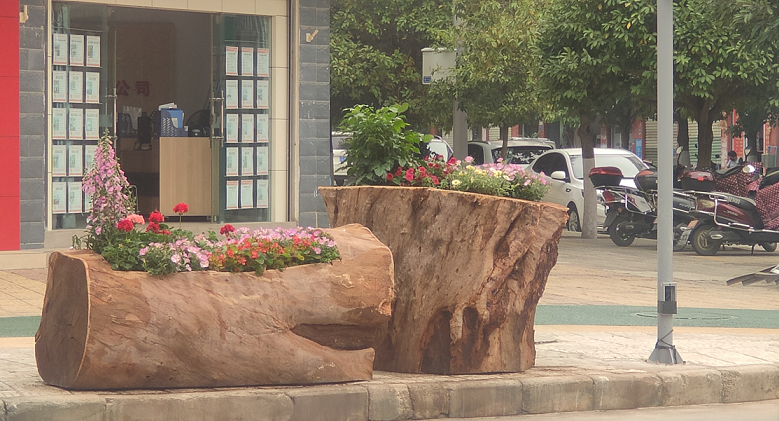 这次绿化提升改造共摆放石质花盆36个,木质树根花盆42个,轮胎花盆50个,组合立式花柱2米10台1个,灯杆悬挂式花篮托架82个,组合花篮339台,补种紫荆树47棵。奇趣造型别致新颖的街头花盆,仿佛一个个精致的"插花"作品,大大提升了重点道路的示范景观效果,成为市民散心的又一道新颖亮丽的风景线。