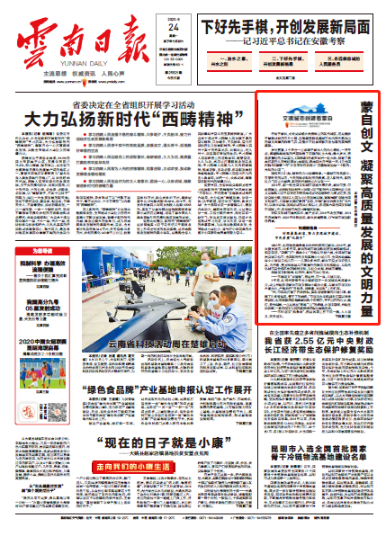 8月10日—14日,云南日报报业集团“文明城市创建看蒙自”全媒体采访组对全市经济社会和全国文明城市创建工作进行了全方位、多视角的采访,形成了一批优质的稿件,陆续在《云南日报》、学习强国、省政府网站、云南网等全媒体进行刊发。根据“1+6+N”总体方案,8月24日《云南日报》头版以《蒙自创文 凝聚高质量发展的文明力量》为题,高度总结、概括了我市创建全国文明城市工作经验做法。