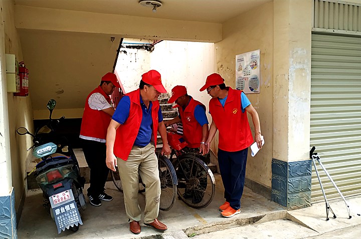 三是将停放在单元门口的僵尸车以及未停放在停车区域内的自行车、电动车等摆放至规定区域内。
