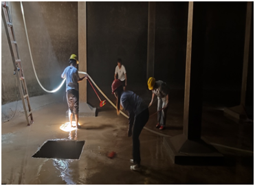 为确保此次清洗工作安全、有序开展,清洗人员严格按照公司清水池清洗工作方案和有限空间作业相关规定,备齐清洗专用设备及工具,进入清水池内部对内壁、池底、池顶等进行全面清洗,清洗过程中,水厂负责人身先士卒,带领清洗人员铲泥、洗刷、装桶,由于工作负荷较大,有的人员双手都磨破了皮,腰背也已累得十分酸疼,但他们没有一句怨言,大家齐心协力、相互配合、连续奋战,一鼓作气将清水池洗刷得干干净净,并作消毒处理。