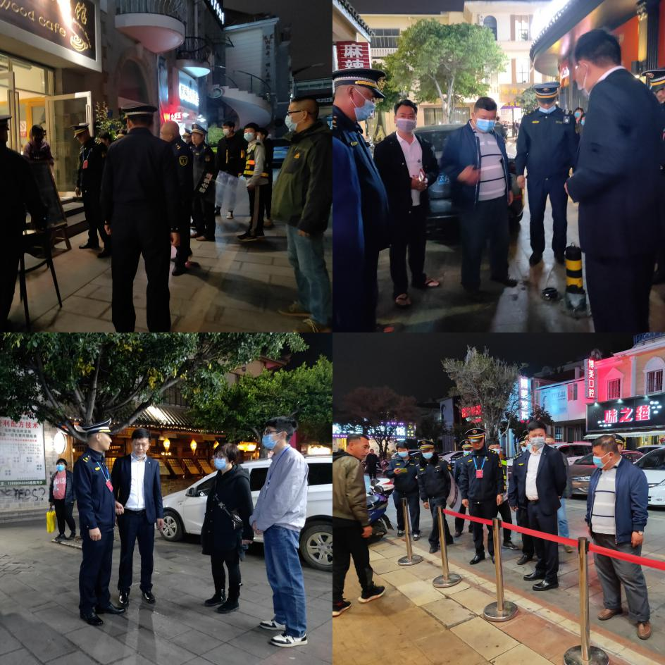 此次专项整治人员分为两队由新天地商业街自东向西分别向道路两侧商铺开展工作,主要对新天地商业街商户占道经营的行为进行劝阻,对未安装油烟净化装置的商户进行责令整改,对消防通道未达标之处责令新天地商业街云南巨和物业服务有限公司红河分公司(以下简称“巨和物业”)进行整改,对车辆未停放到车位上的行为进行劝阻。由于当日露天烧烤并未出摊,我局已责令巨和物业解除与商贩在新天地商业街内摆摊设点签订的租赁合同,并要求巨和物业加强管理对新天地商业街内有违规行为的商户进行劝阻并下发书面整改通知,对拒不整改的商户书面上报市城市综合执法局进行处理。