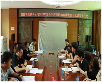 6月8日,蒙自城镇供水公司举行2020年“安全生产月”活动启动暨安全承诺签字仪式。公司安全生产领导小组组长、党支部书记、经理李军,安全生产领导小组副组长、党支部副书记何琦,副经理郑琳以及安全生产领导小组成员、安全员参加启动仪式。