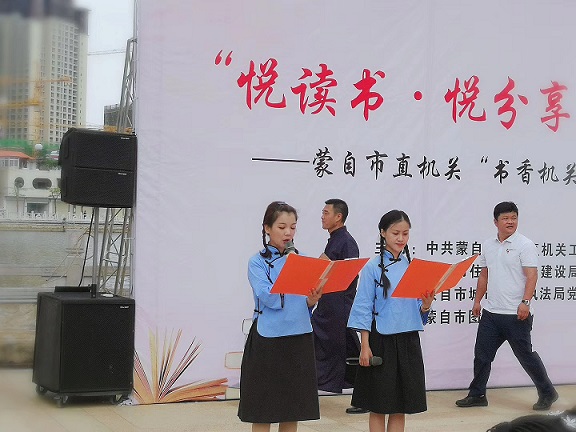以书为媒,博览群书;以书为友,博采众长。4月23日是世界读书日。为进一步推动和营造“全民阅读”和“书香蒙自”建设的浓厚氛围,市直机关10余家单位在美丽的南湖畔开展了第五党建联盟片区“悦读书.悦分享”读书活动。各单位党组织以书为媒展现时下基层党员的风采,以书为友,畅谈思想,以书为师,润泽心灵。