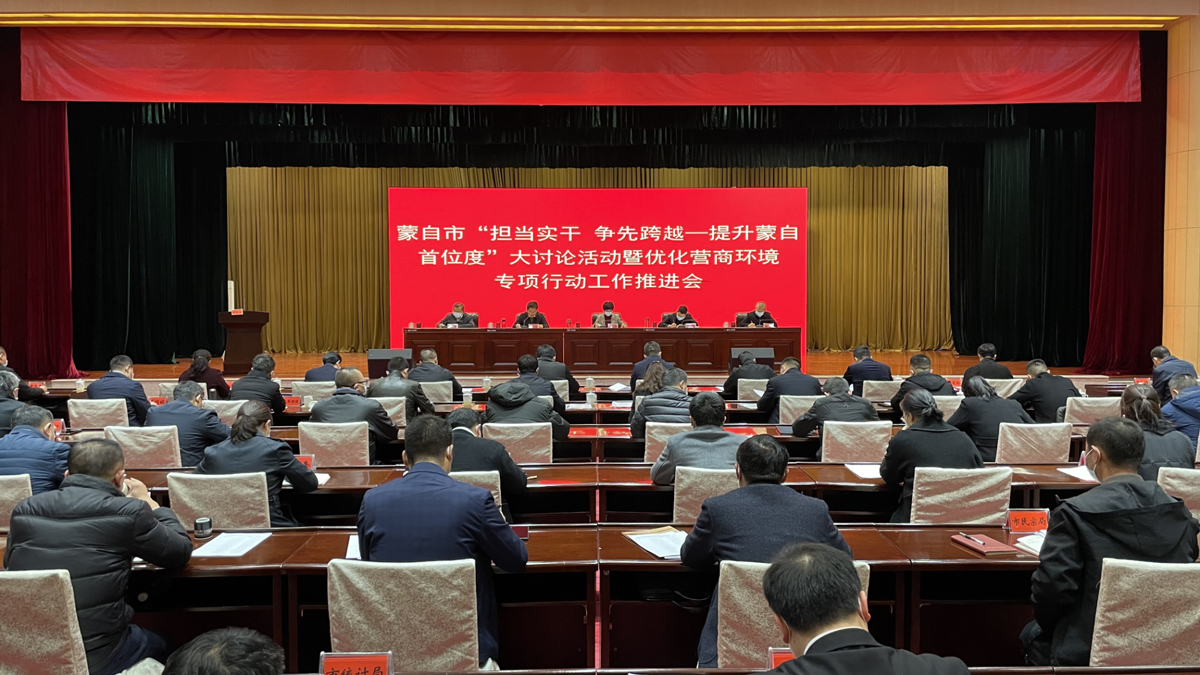 云南省蒙自市在“担当实干、争先跨越”大讨论活动中,建立“党委领导、政府牵头、政企共商、产业联盟、金融助力”的协调机制,聚焦优化营商环境“12354”工作思路,“破”思想、“创”机制、“建”制度,以思想破冰推动行动创新,开展优化营商环境专项行动,以“硬措施”抓好“软环境”。