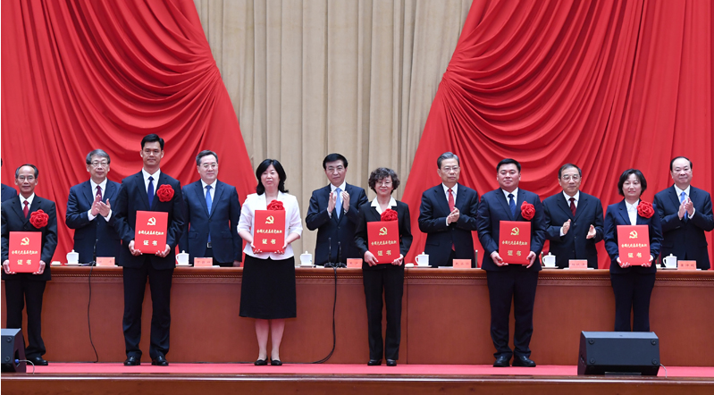 王沪宁宣读《中共中央关于授予“七一勋章”的决定》。决定指出,为了隆重表彰在中国革命、建设、改革各个历史时期,为党和人民事业一辈子孜孜以求、默默奉献,贡献突出、品德高尚的功勋模范党员,激励全党坚守初心使命、忠诚干净担当,党中央决定,授予马毛姐等29位同志“七一勋章”。