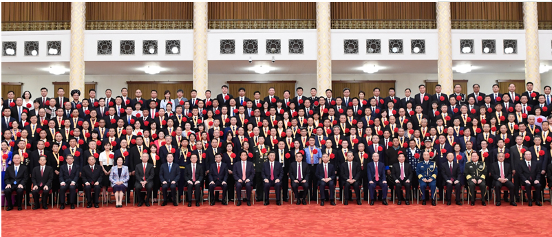 颁授仪式前,习近平等领导同志会见了全国“两优一先”表彰对象,并同大家合影留念。