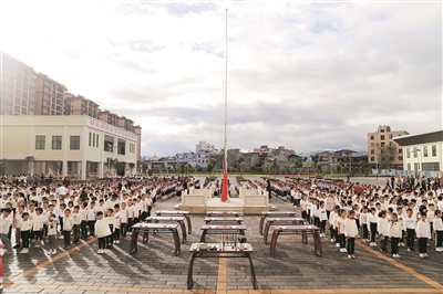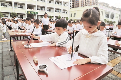 开笔礼是中国优秀的传统文化礼仪之一。凤凰小学通过为孩子们举办开笔礼,激励孩子们珍惜读书的机会、勤奋学习、尊师孝亲,培养他们对文化知识的神圣感情。开笔礼随着庄严的升旗仪式拉开序幕,校长担任升旗手,全体师生及家长面向国旗,激情昂扬地唱起了中华人民共和国国歌。升旗仪式后,校领导致辞,为学子们吹响了开笔礼的号角。