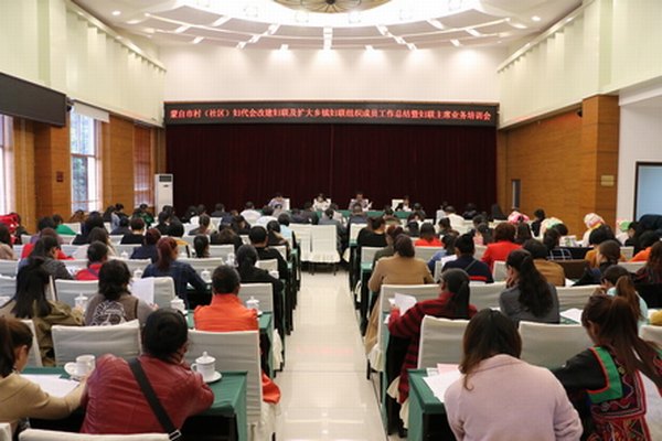 11月3日,蒙自召开村(社区)妇代会改建妇联及扩大乡镇妇联组织成员工作总结暨妇联主席业务培训会,并传达学习十九大精神。市委副书记赵雄,州妇联副主席杨卫佳参会并讲话。