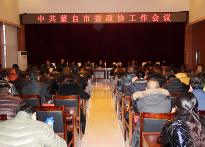 马文亮在讲话中指出,近年来,市委坚持和完善中国共产党领导的多党合作和政治协商基本政治制度,切实加强和改进对政协工作的领导,着力构建党委重视、政府支持、政协主动、各方配合的工作格局,巩固和发展了最广泛的爱国统一战线,有力地促进了人民政协事业的发展。市政协高举爱国主义和社会主义两面旗帜,牢牢把握团结和民主两大主题,切实履行职能,充分发挥人民政协的重要作用,为推进蒙自政治、经济、文化、社会和生态文明建设作出了积极贡献。市政协始终与市委思想上同心同德、目标上同心同向、行动上同心同行,做到政治协商有方、民主监督有力、参政议政有为、服务大局有效,市委对市政协的工作是充分肯定的。马文亮代表中共蒙自市委,向市政协和广大政协委员,向各民主党派、工商联和无党派人士,表示衷心的感谢。