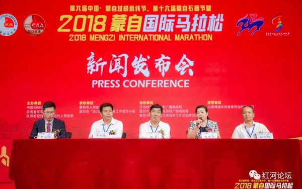 发布会上,中共蒙自市委常委、宣传部部长、“活力蒙自”推进工作领导小组副组长张瑞华作了热情洋溢的欢迎致辞。她表示,蒙自是红河州的州府所在地,是面向南亚东南亚的国家门户,是滇中城市经济圈重要节点城市和滇南中心城市核心区,是一座有着厚重底蕴的历史文化名城,有上万年的人类繁衍活动史和2100多年的建县史,是云南文明的重要发祥地和云南对外开放的肇始地,先后诞生了云南第一个海关、第一个电报局、第一个邮政局、第一个外国银行、第一条民营铁路、第一个外资企业、第一个驻滇领事馆、第一个火电站,孕育了“百年滇越铁路、百年开埠通商、百年过桥米线”三张靓丽的文化名片。而具有300多年历史的过桥米线文化和石榴文化是蒙自享誉中外的两张亮丽城市名片。为推进传承蒙自传统文化,实现文旅融合发展,蒙自市在2017年成功承办红河州建州60周年多项庆祝活动,并在举办“过桥米线节”“石榴节”两节精彩活动的基础上,将于今年改革开放40周年和中华人民共和国成立69周年华诞之际举办“第六届中国·蒙自过桥米线节”、“第十六届蒙自石榴节”暨“活力蒙自·2018年蒙自国际马拉松赛”,希望通过精彩的活动和赛事,进一步增强蒙自的吸引力和影响力,不断提高蒙自的知名度和美誉度,进一步促进蒙自经济社会的全面发展。