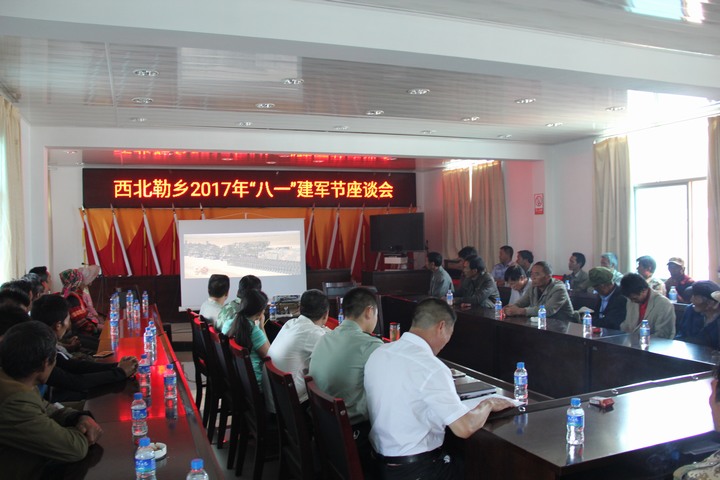 在中国人民解放军建军90周年之际,为了表达对复退军人的节日问候和良好祝愿,8月2日下午,西北勒乡人民政府在乡机关大会议室组织召开了西北勒乡2017年“八一”建军节座谈会。西北勒乡党委、政府相关领导、各村主任、民兵连长和复退军人参加了此次座谈会。