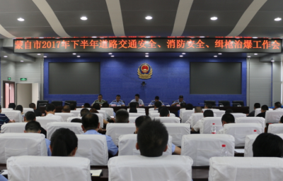 会议通报了我市上半年消防安全工作、道路交通安全工作和缉枪治爆工作开展情况,并对下半年工作进行安排和部署。