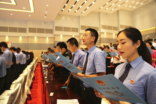 参加活动的全体人员高唱《人民检察官之歌》——“执法为民是党的嘱托,法律监督是我们神圣的职责”,唱响了法律监督职责,唱出了红河检察人豪迈情怀,唱出了红河检察人的使命与责任。