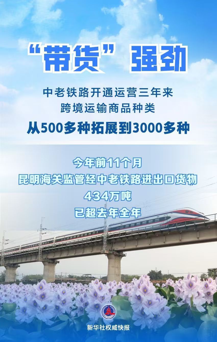 3年间,中老铁路“含金量”日益凸显。“从通到畅、从畅到快、从快到旺”,中老铁路累计发送旅客超4300万人次,货物运输突破4830万吨,“黄金大通道”活力奔涌,成为共建“一带一路”合作样板。