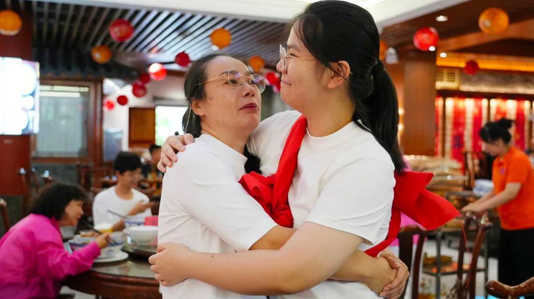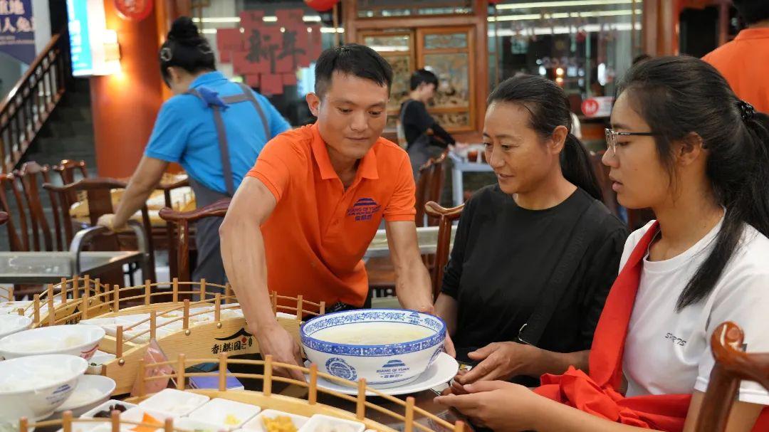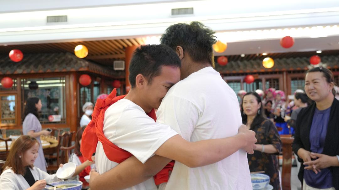 最动人的画面也在此时悄然上演:家长们带着不舍将这碗象征着思念的家乡味亲手喂到孩子口中,学子们起身拥抱父母,千言万语都凝聚在此刻。