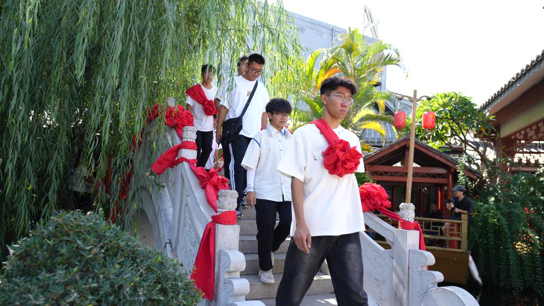 过桥米线盛宴后,随着一声锣响和一声声“才子过桥喽”,学子们依次走过才子桥,寓意他们成功上岸。