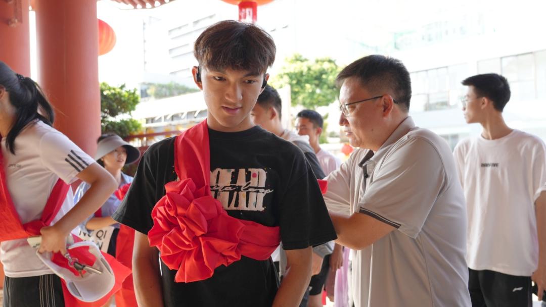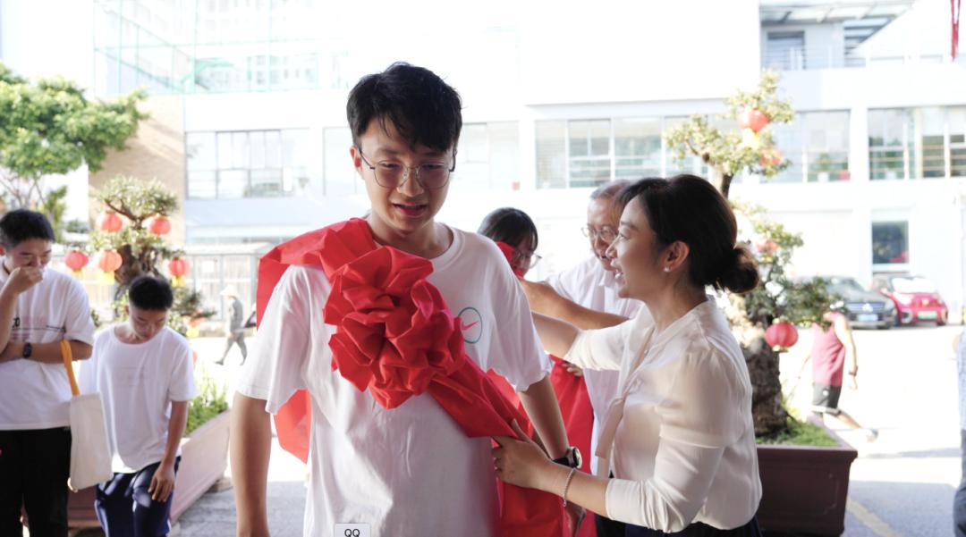 市级相关领导与学子们亲切交流,并为他们佩戴上象征荣耀的大红花,向他们致以诚挚的祝贺。