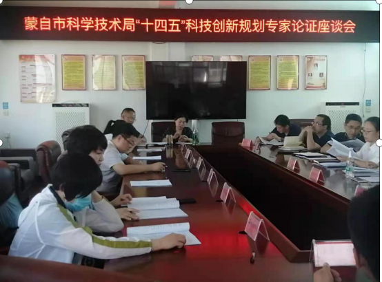 为进一步做好《蒙自市“十四五”科技创新规划》(以下简称《规划》)编制工作,蒙自市科技局委托云南杰创规划公司编写《规划》,到今年4月《规划》进行了5次修改,并向60多家州、市级有关单位征求修改意见。4月22日下午,蒙自市科技局邀请红河学院、州科技局、州农科院、市发改局、市工信局、市农业农村局、智慧蒙自运营管理中心等单位和矿冶、云科创、瀛洲水泥厂等企业的专家进行论证,有13位专家给出了意见。