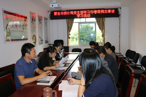 为进一步贯彻落实“两学一做”学习教育常态化制度化,10月10日上午,蒙自市统计局党支部开展学习印春荣同志先进事迹专题会议,会议由党支部书记吴翔华主持,全局党员干部参加学习会。