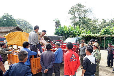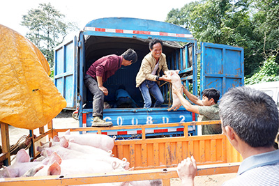 8月31日,一辆满载着小猪仔的汽车翻山越岭,缓缓驶进蒙自市水田乡小寨村。早就来到村口等候的村民们,个个脸上挂着喜悦的笑容,迫不及待地围在刚停稳的汽车旁边,对着猪仔们左看看右瞧瞧,并兴高采烈地帮助工作人员搬运小猪。