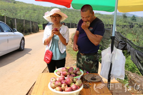 苹果园边,来自昆明的张老板边尝苹果边说:“这苹果又香又甜,卖多少钱一斤,给我称10公斤,我准备带到重庆给家人品尝。”“果园里自选采摘的16元1公斤,兜里挑选的14元1公斤,不选的12元1公斤。”果农王忠成答道。