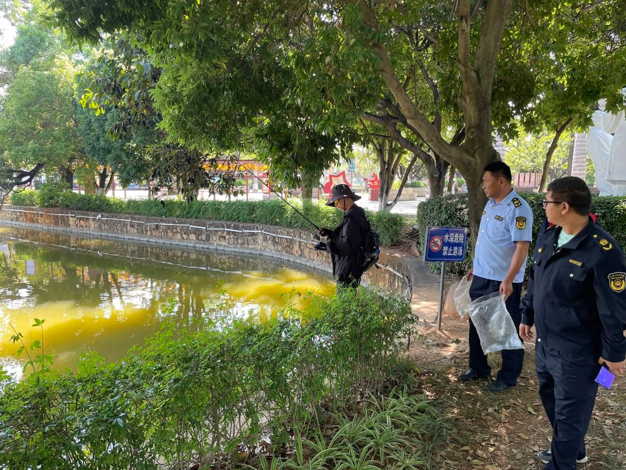 加强公园秩序整治,维护公园秩序井然。组织执法人员和志愿者集中对公园进行巡查,一旦发现违规垂钓、私搭帐篷、乱挂躺椅、乱刻乱画、随地吐痰、乱扔垃圾、不文明养犬、非机动车入园、损毁公园设施和花草树木等行为进行及时制止。同时加派公园管理人员,围绕南湖开展全天候巡查,对游泳、水域周边嬉戏等不文明游园行为进行劝离,全力做好公园防溺水工作,进一步提升游园的安全感。