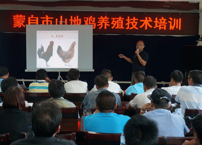 7月20日,蒙自市山地鸡养殖技术培训会在西北勒乡举行。州、市农业局相关领导及山地鸡项目实施户70余人次参加培训。