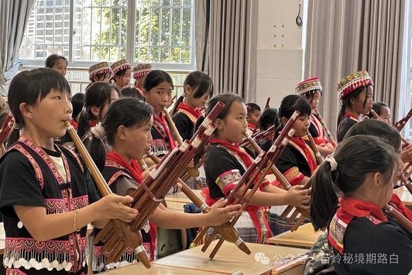 芦笙雅乐-在“一器一韵”特色课程中,音乐教师熊丽芬创新苗族芦笙教学方法,给孩子们讲解了苗族芦笙的来源、发展和传统文化内涵,让孩子们进一步了解苗族芦笙,带领学生学习简谱、乐理知识,将民族文化与现代结合。