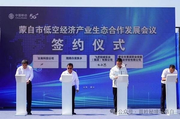 3月27日蒙自市召开低空经济产业生态合作发展会议期路白苗族乡在低空经济领域先试先行与云南省科技投资管理有限公司签订无人机植保、农产品配送协议