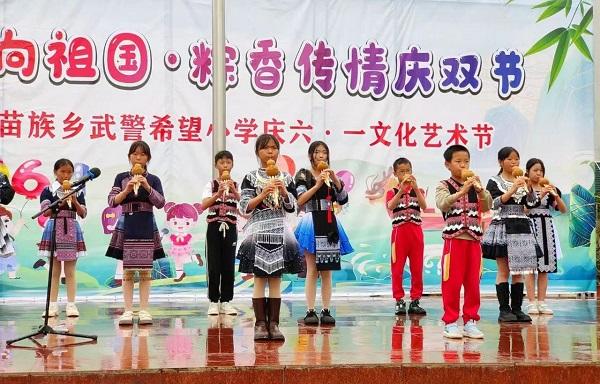 展演舞台上,苗族武术操《动感武术》、葫芦丝演奏《龙的传人》、快板说唱《法治二十四节气》等节目轮番上演,少年宫展出的非遗手作、主题绘画则诉说着孩子们对家乡的热爱。