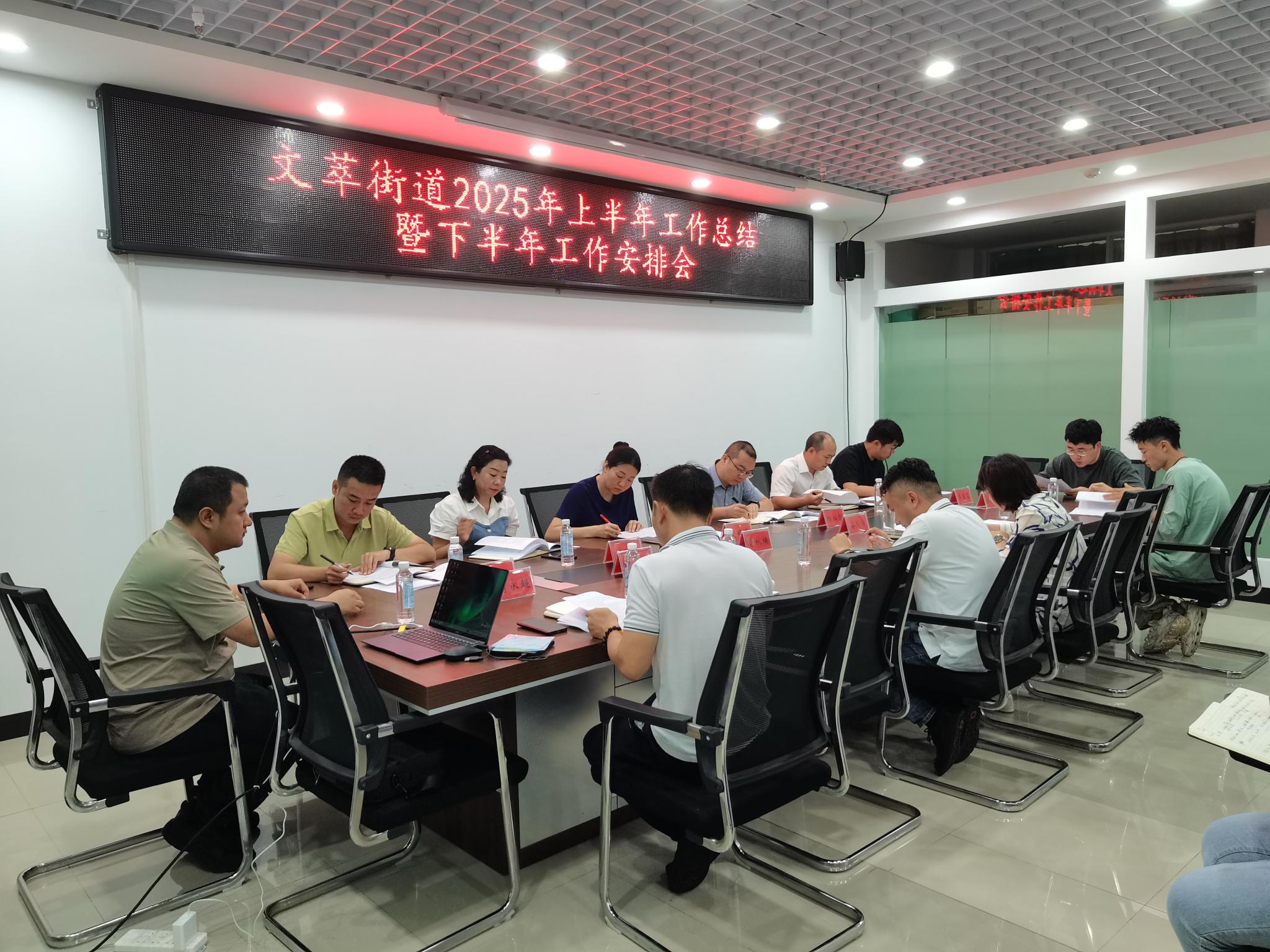 7月31日,文萃街道召开2025年上半年工作总结暨下半年工作安排会。街道党政班子成员、各办(中心)负责人、8个村(社区)党总支书记参加会议。