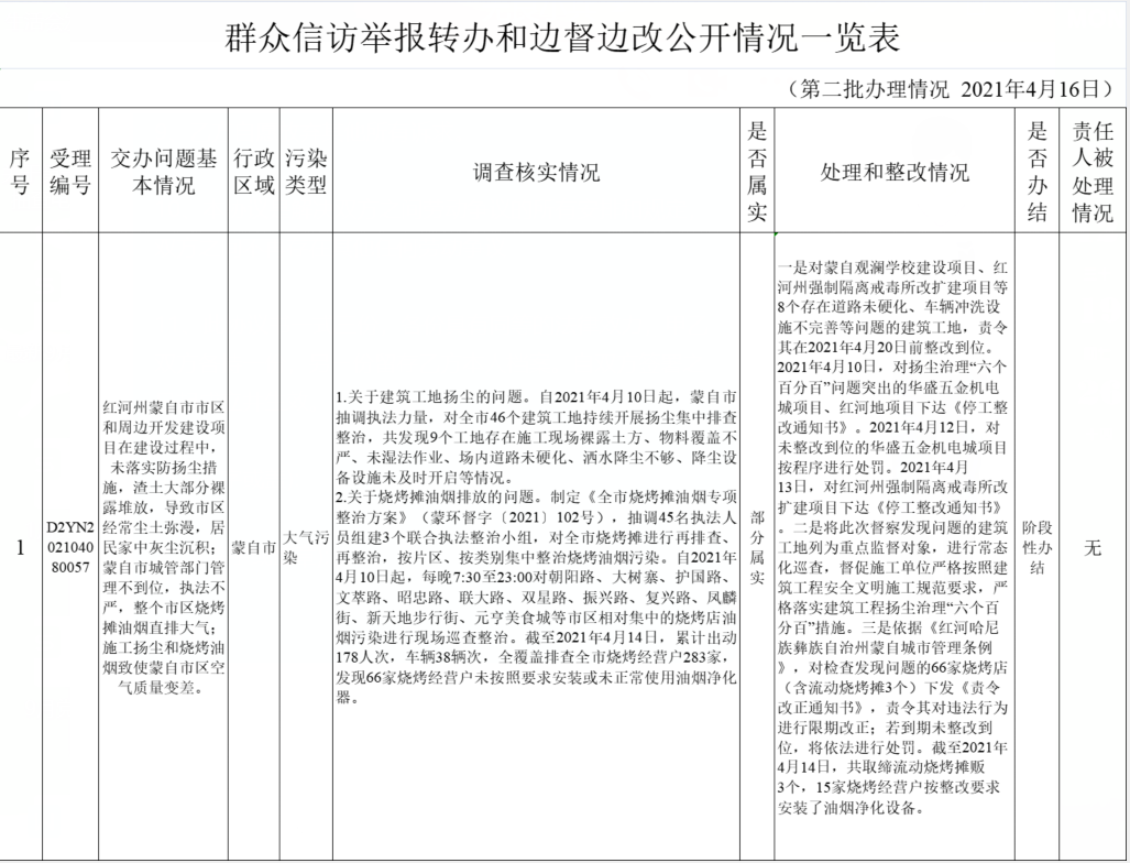 交办群众举报投诉案件办理具体情况在红河州人民政府网站进行详细公告,接受社会各界监督。