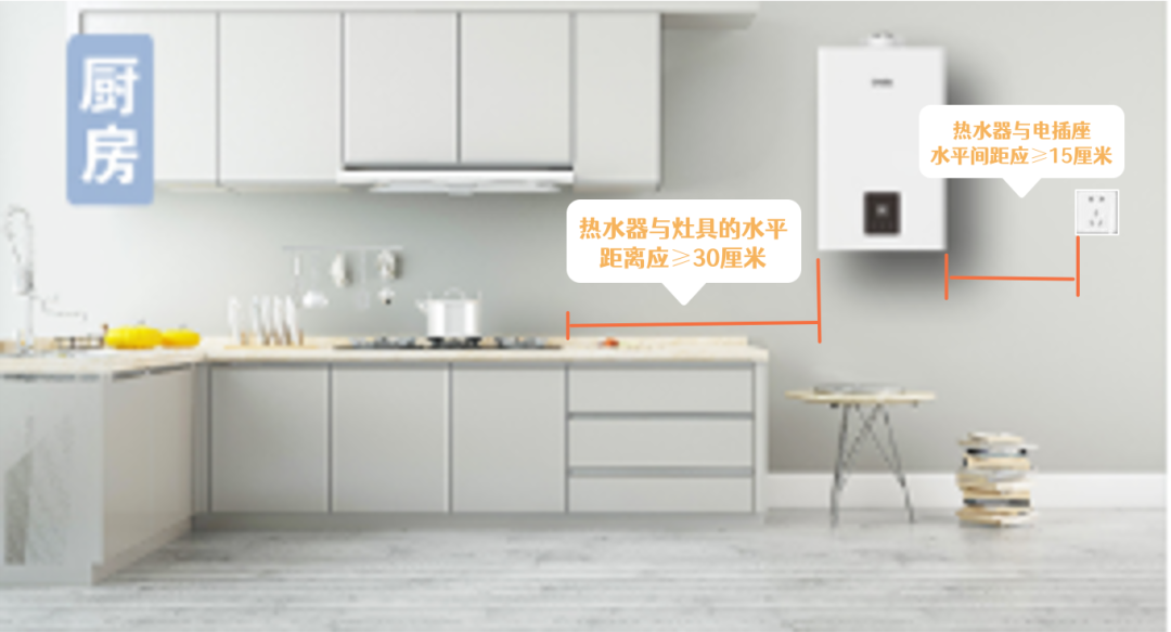 1、热水器或采暖炉与相邻灶具的水平净距不得小于30cm。